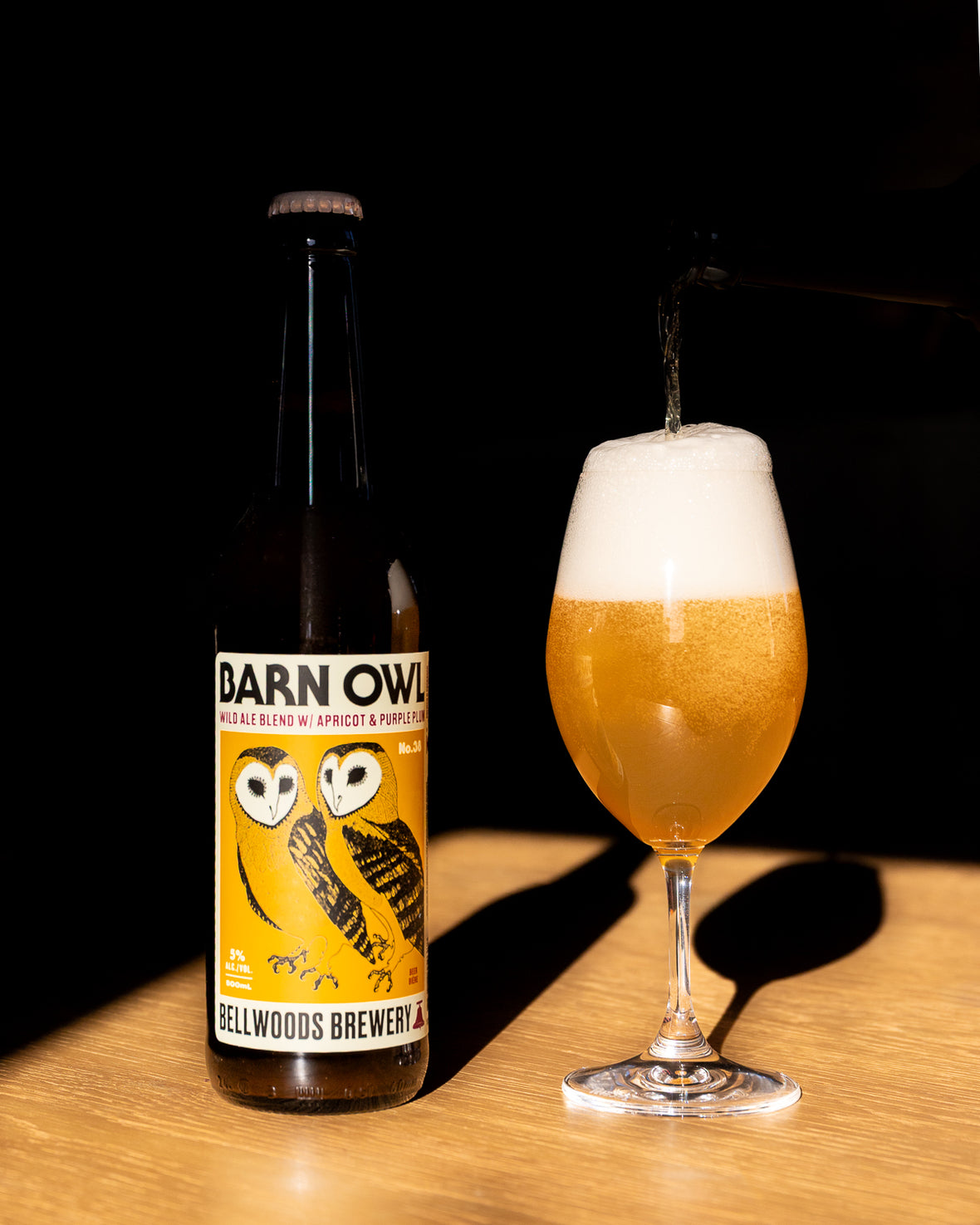 Barn Owl is a series of one-off creations that are released sporadically throughout the year, just as soon as we deem them ripe for picking. No. 38 is a blend of barrel aged wild ales, dry-hopped and conditioned on hand-processed apricots and purple plums from Warner's Farms.