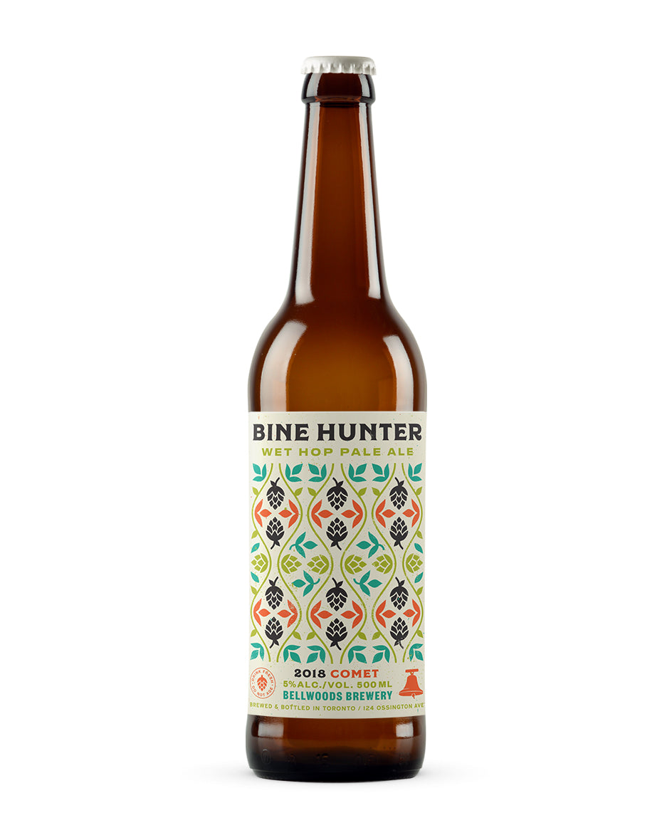 Wet hop pale ales are made using whole cone, fresh hops straight from the bine, instead of the more common dried and pelletized form. The style is a rare seasonal treat, possible only during the hop harvest which occurs just once a year in each hemisphere. Bine Hunter 2018 utilizes Comet hop flowers from Northwest Hop Farms in BC's Fraser Valley, and deserves to be consumed AFAP (as fresh as possible!).