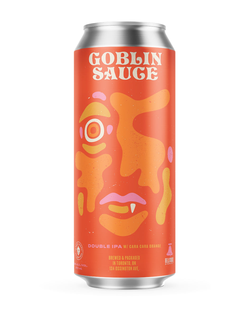 Goblin Sauce is a Double IPA we created to showcase the powerful trio that is Citra, Simcoe, and Mosaic. Adding to the pine-centric experience of Witchshark, and peach-tastic vibes of Double Jutsu, Goblin Sauce brings a decidedly berry-influenced flavour, with a nice soft body, slightly lower ABV, and enormous dry hop.