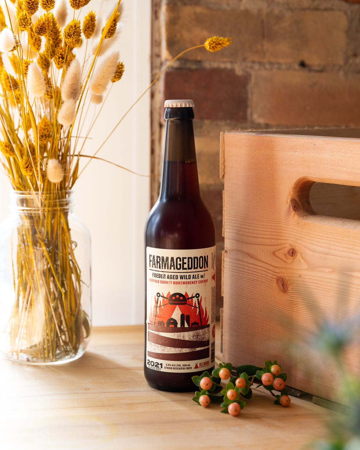 Farmageddon is our wild farmhouse ale that we've been brewing, blending, and aging for almost as many years as we've been open. The blending process allows us to maintain a common thread across batches, the aging adds nuanced layers, while the brett and bacteria work hard to create small idiosyncrasies in each release. It's a refined, effervescent, and delicious beer worthy of special occasions and idle weeknights.