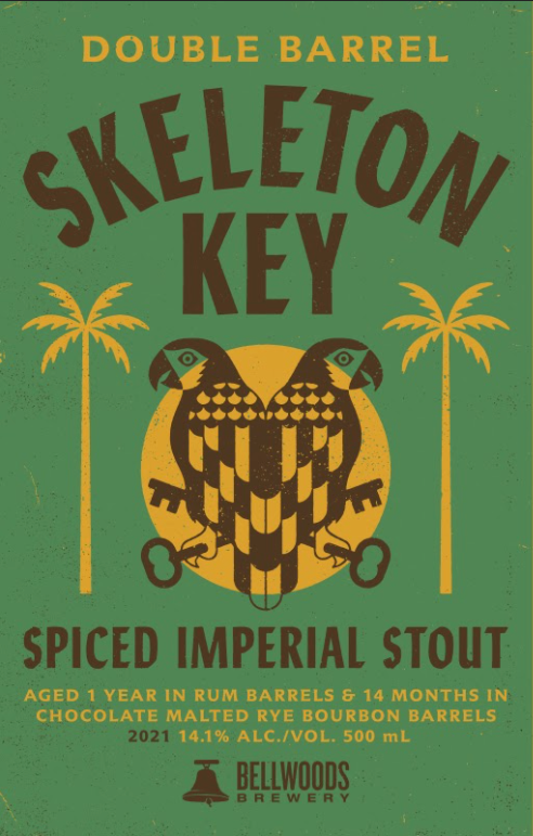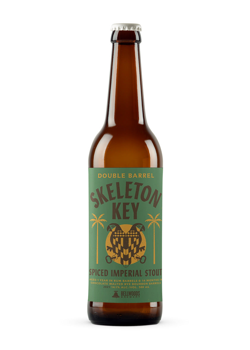 Skeleton Key is an imperial stout aged for just a year in rum barrels, with cinnamon, ginger, mace, black pepper, cardamom, nutmeg, allspice, star anise, and vanilla. The result is an intense showcase of dark chocolate, caramelized malts, spirit barrel, and lively spices.