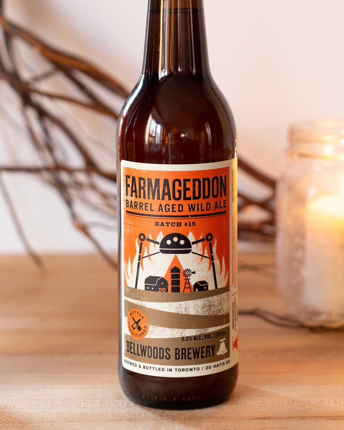 Farmageddon is our wild farmhouse ale that we've been brewing, blending, and aging for almost as many years as we've been open. The blending process allows us to maintain a common thread across batches, the aging adds nuanced layers, while the brett and bacteria work hard to create small idiosyncrasies in each release. It's a refined, effervescent, and delicious beer worthy of special occasions and idle weeknights.