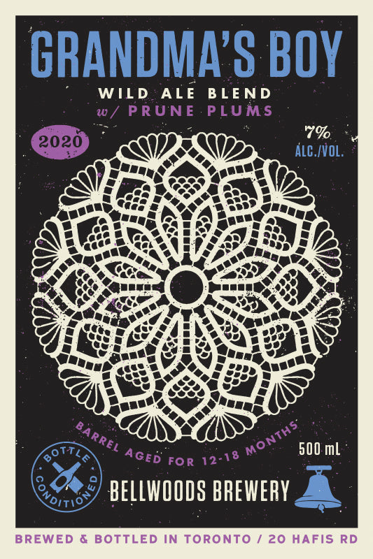 Grandma’s Boy is a wild ale blend, aged in oak foeders for the better part of a year. Defined by firm acidity, refined brett character, and spritzy carbonation, it’s a beer that balances stone fruit flavour with soft minerality.