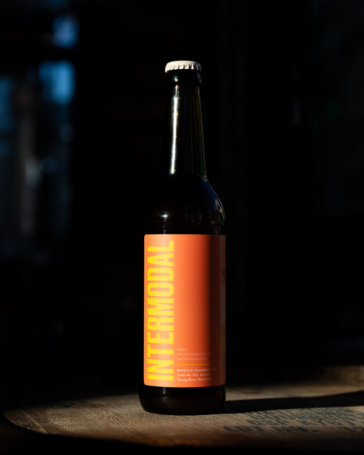 Intermodal is our 100% spontaneously inoculated wild beer, created in a style inspired by traditional lambic producers. The project began with a traditional turbid wort recipe and an overnight slumber in our outdoor coolship. Exposed to the elements, and subject to the late fall temperatures, the wort was cooled gradually, and joined by the finest wild yeast and microorganisms capable of transforming it into beer.