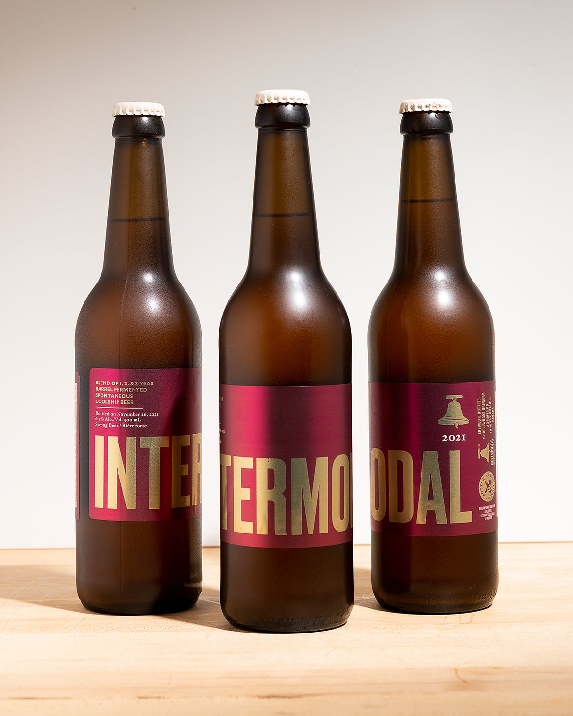 Intermodal is our 100% spontaneously inoculated wild beer, created in a style inspired by traditional lambic producers. This particular Intermodal is our first three year blend, with spontaneously fermented beer from 2020, 2019 and 2018. In other words, it is the culmination of four years’ worth of spontaneous beer making. The project began in the final months of 2017, with a traditional turbid wort recipe, and an overnight slumber in our outdoor coolship. Exposed to the elements, and subject to the late fall temperatures, the wort was cooled gradually, and joined by the finest wild yeast and microorganisms capable of transforming it into beer.