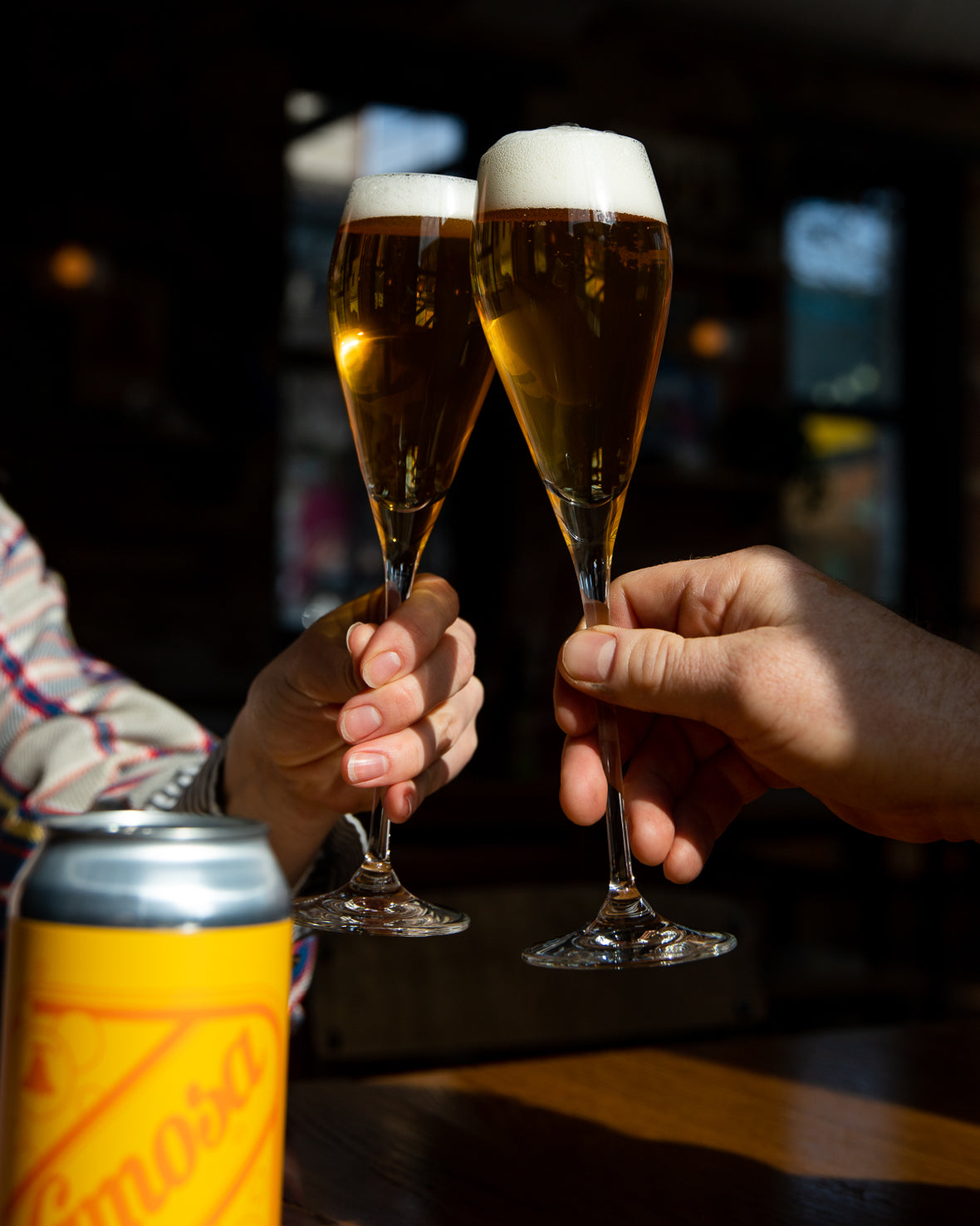 Our contribution to the breakfast table is Lamosa: a Mimosa Lager brewed with tangerine purée, fresh pressed orange juice, and freshly sliced orange peel. To support and complement the prodigious addition of oranges (x3), we selected the ingredients in our roster that would best promote white wine notes for a real mimosa-esque je ne sais quoi.