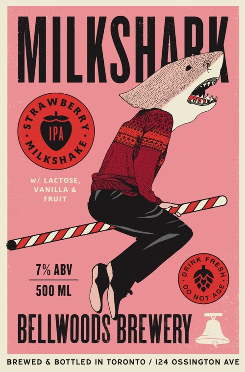 This heavily dry-hopped Milkshake-style IPA was brewed with lactose sugar and apple pectin, and was conditioned on vanilla and a huge amount of strawberry puree.