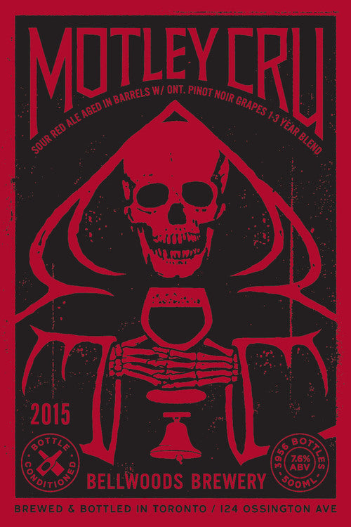 MC 2015 utilizes a blend of sour red ales in barrels that ranged in age from 1-3 years. A mix of wild yeast and bacteria strains lend brett-derived qualities of leather, cherry, and barnyard, and encourage lactic sourness with just a touch of acetic. The pinot noir grapes from Tawse winery were a no brainer to incorporate (stay tuned for more collaborations with Tawse), imparting soft fruity flavours, and ascribing an element of Ontario terroir to the mix. There’s rhubarb, oak, and cantaloupe in the aromatics, with a tantalizing hint of the acidity to follow. The flavour comes in layers, with notes of wild strawberry, rich oak, subtle spice, and sherry, that culminate in a decisive sourness that’s well-rounded and pleasing without being mouth-puckering. The body is delicate and carbonation light, allowing the vast assembly of flavours to play centre-stage in this refined and drinkable beer. Bold characteristics of ‘taking ourselves too seriously’ are accented by nuanced tones of ‘just taste it’. Finishes with strong notes of ‘you won’t regret it’.