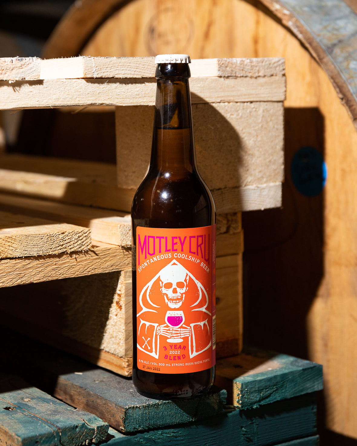 Motley Cru 2022 is a three year blend of spontaneous coolship beer. It was aged in neutral barrels and blended together to our taste, with the more mature beer providing classic wild fermentation characteristics and the younger beer exhibiting clean and fruity qualities. Combined, they provide the best of both worlds. In striking our preferred balance between older and newer barrels, we were also striving to create a beer that is simultaneously true to what we do and a nod to what Belgian Lambic breweries have been doing for centuries.