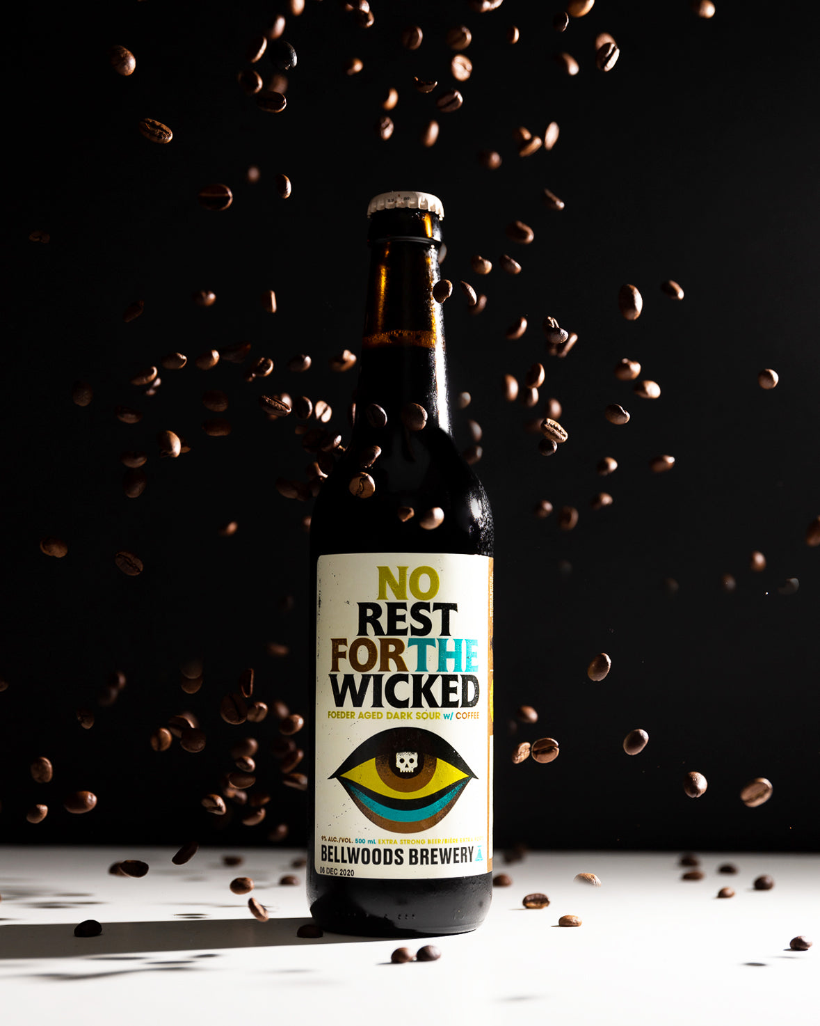 No Rest For The Wicked is a Foeder Aged Dark Sour that first emerged in the early days of Bellwoods.