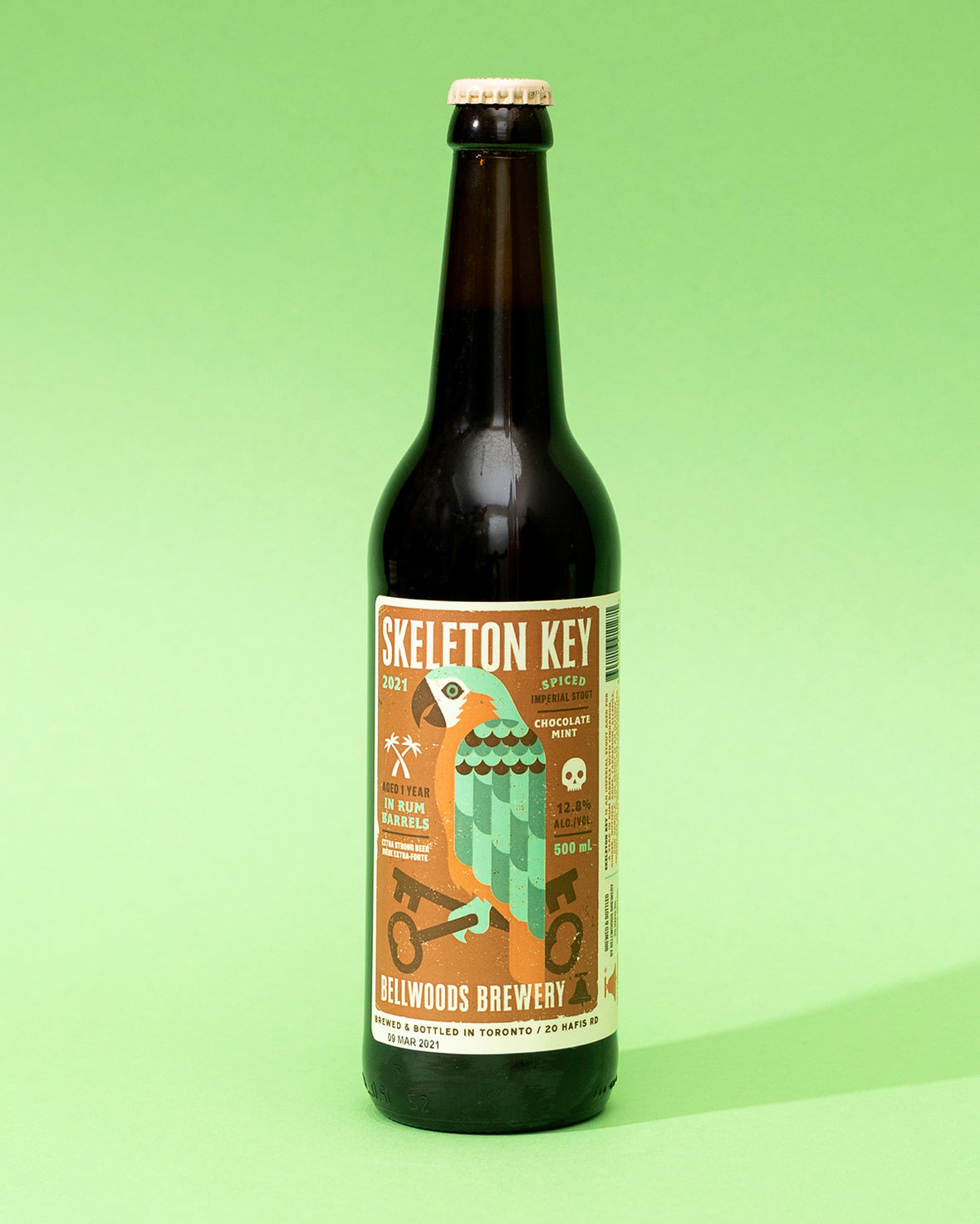 Skeleton Key is an imperial stout aged for just over a year in rum barrels, with a mix of cinnamon, ginger, nutmeg, anise, cardamom, all spice, and vanilla. The resulting beer is an intense showcase of dark chocolate, caramelized malts, spirit barrel, and lively spices. This 2021 variant has been conditioned with mint and chocolate.