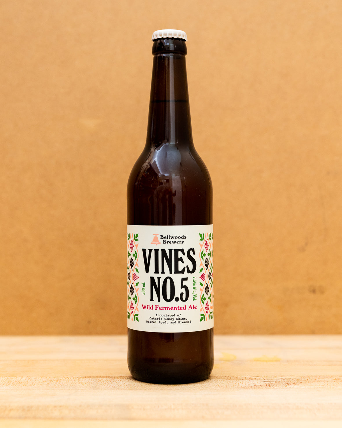 No. 5 is wort we inoculated with post-fermentation gamay skins (from Rosewood Estates Winery), then barrel aged, and blended to balance flavours. It's lightly fruity with firm acidity.