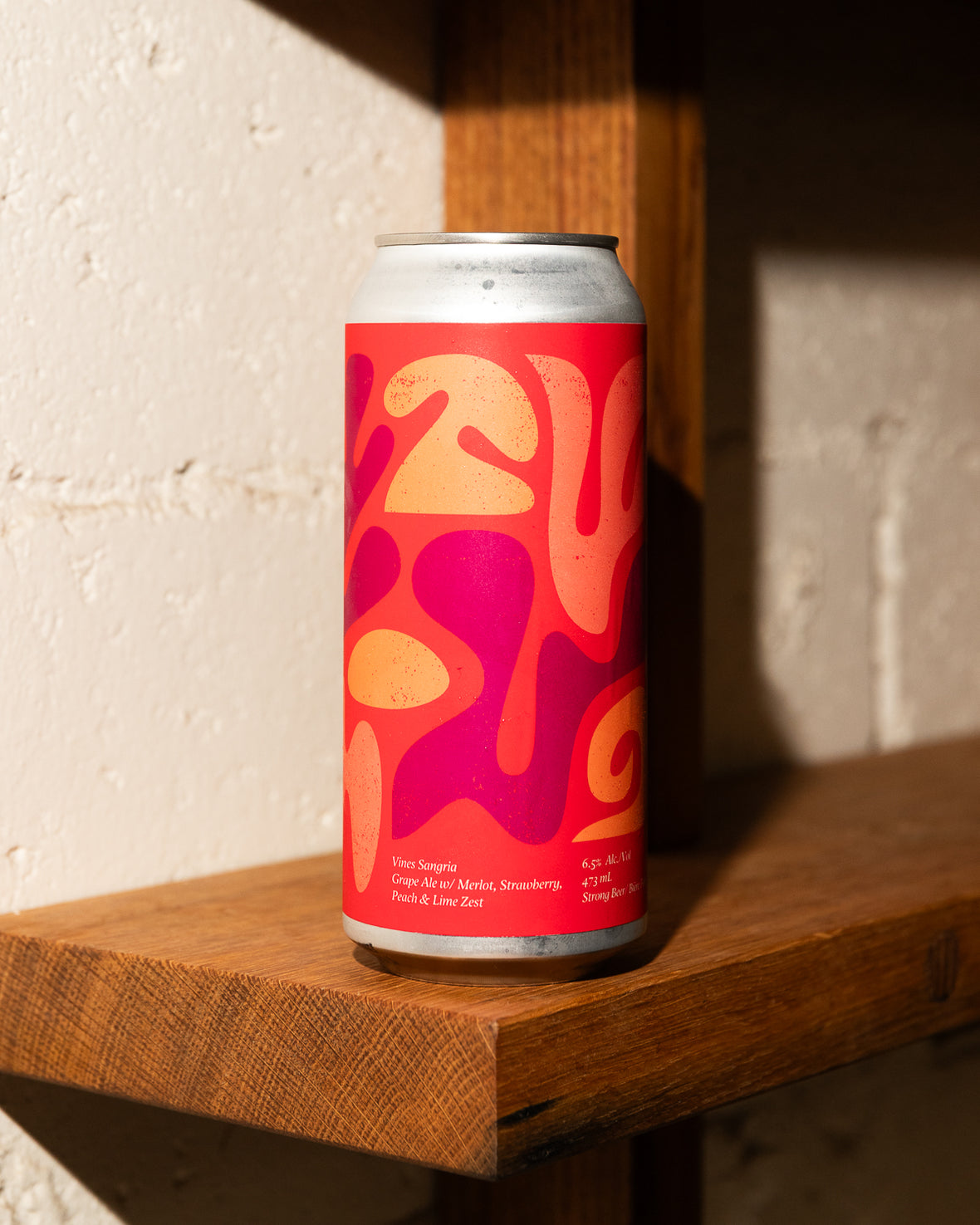This particular Vines started in the same fashion as the others in our wine-influence series: by inoculating wort with yeast from pressed grape skins. While it was maturing and mulling things over in barrels, so were we. Where do we take this elixir after its ses jours in oak?, we wondered. Enter: Vines Sangria. For optimal beer/wine hybrid status, we turned to our wine-based mood board for inspiration and our next steps were clear: blend the barrels together and further condition the beer on Merlot, Strawberry, Peach and Lime Zest.