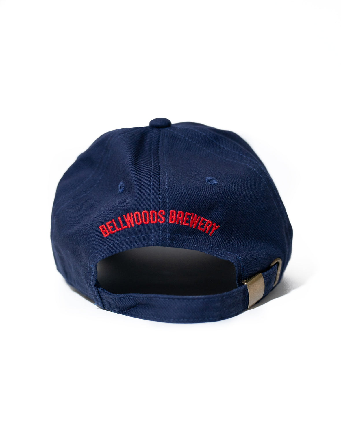 Cotton Nissi pigment dye hat with embroidered bell logo on front and Bellwoods Brewery on back.
