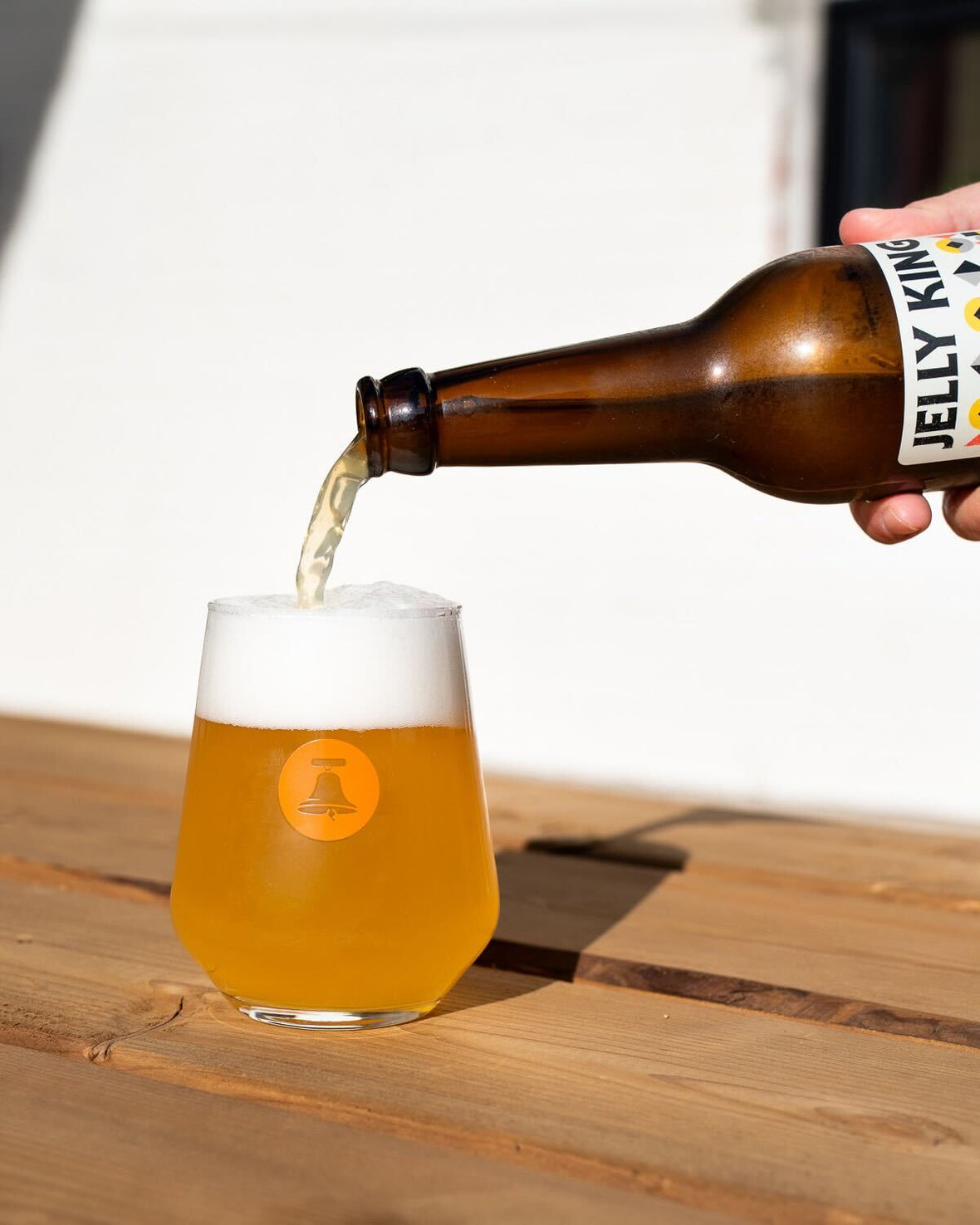 2025 14oz Jelly King glassware in yellow, orange, and turquoise.